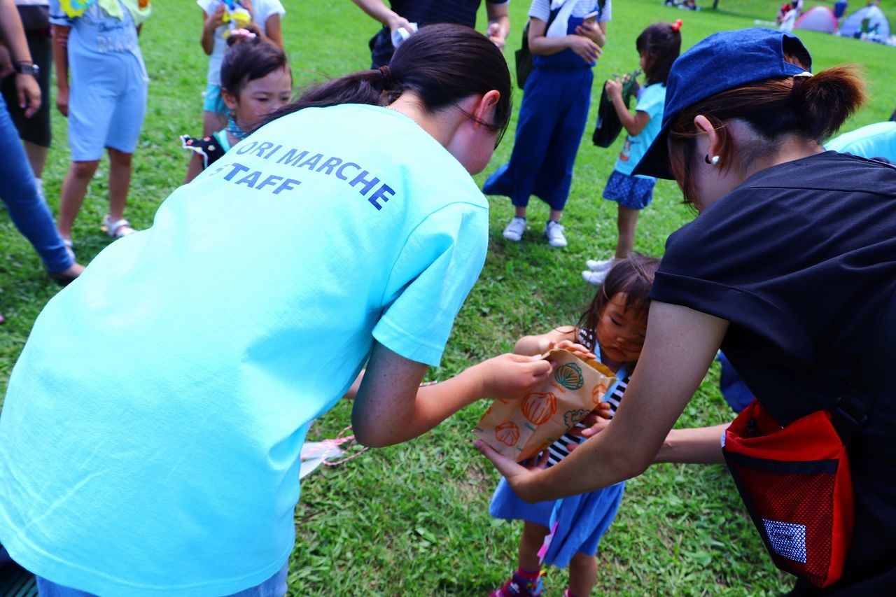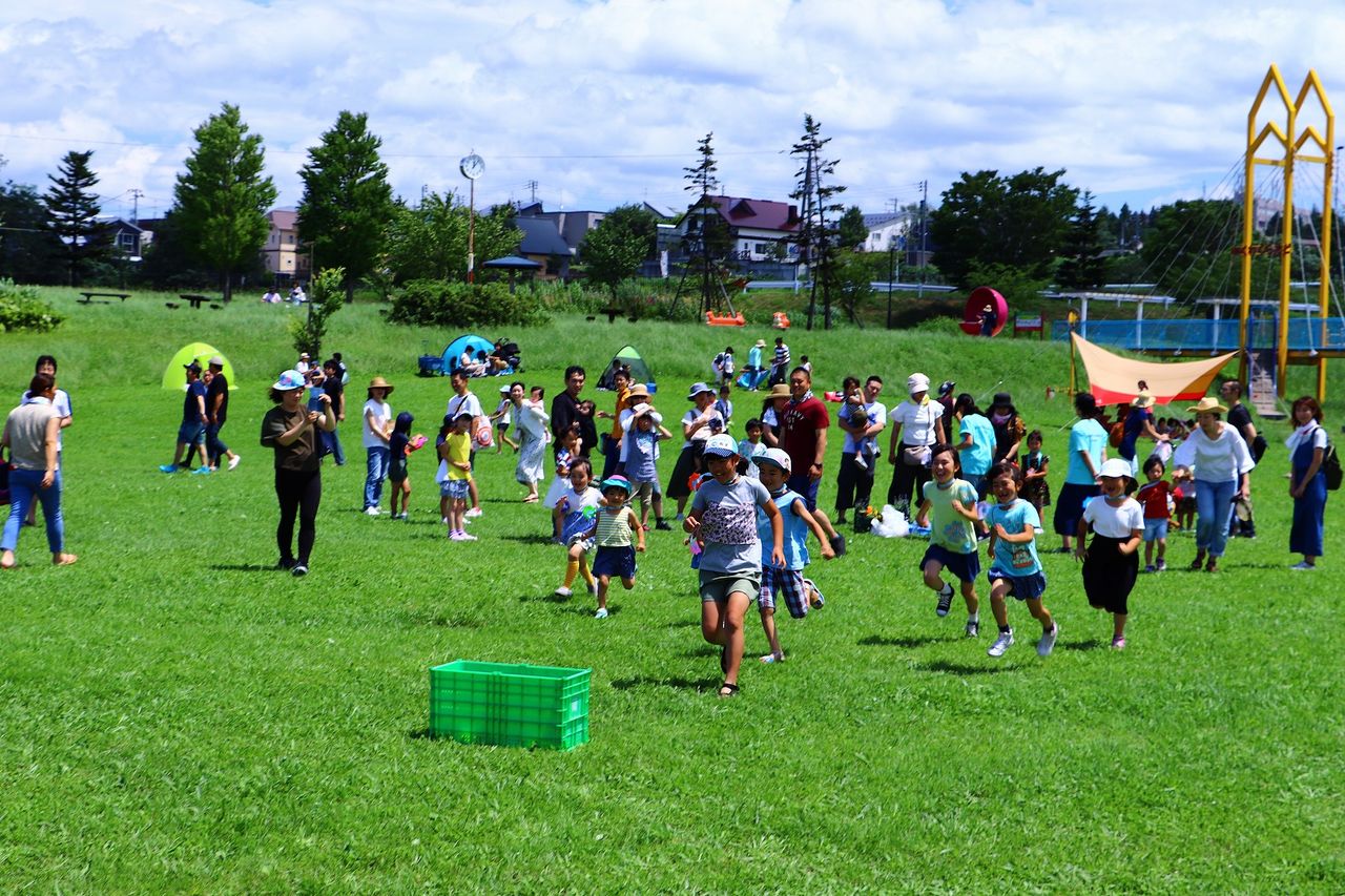 ちびっこがお母さんのために走って野菜をゲットするイベント。