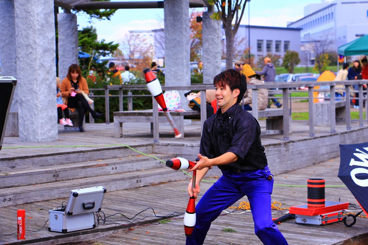 10:00からは、大道芸人アットさんのパフォーマンスショー。