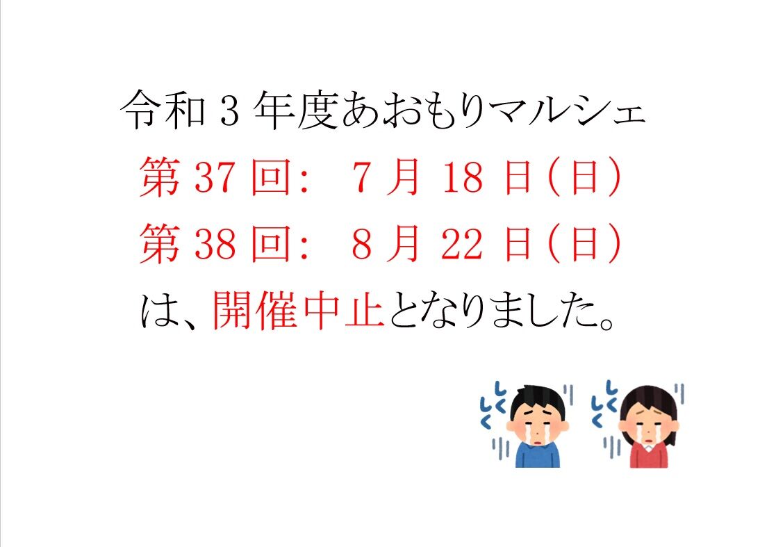 7月18日開催予定だったあおもりマルシェに続き、8月22日開催予定だった第38回あおもりマルシェも、開催中止となりました。