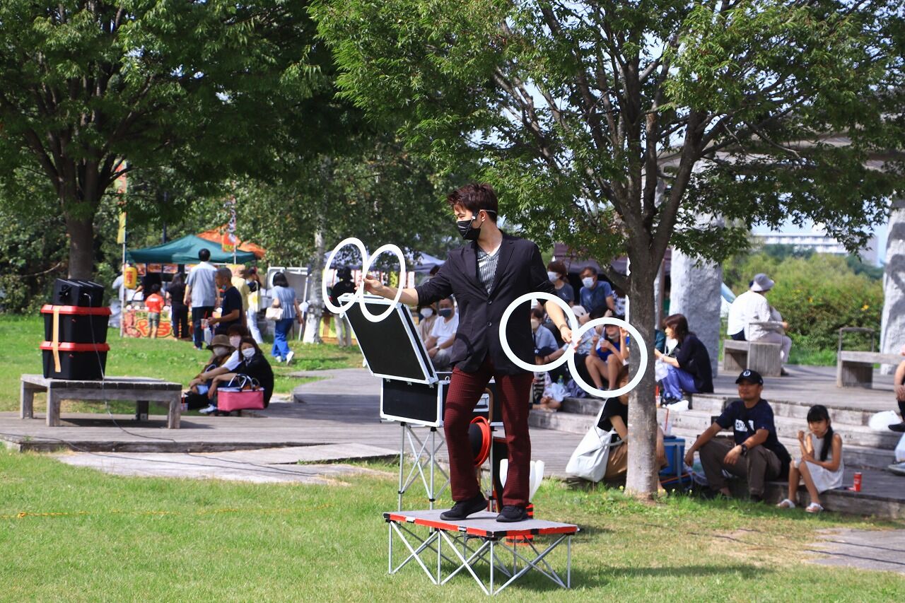 ちなみにこの画像の中に、大道芸人アットさんがいます。
