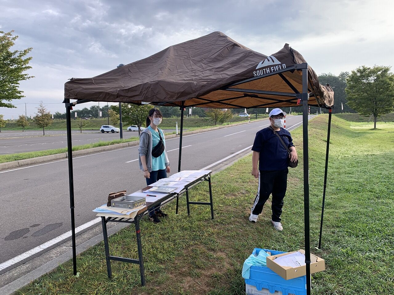 午前6時半に、出店者受付のテントを展開。